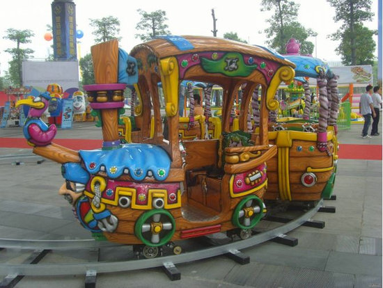 這就是我公司生產出來的軌道型的海盜船小火車,小朋友的最愛。接下來我發幾張出貨的圖片。